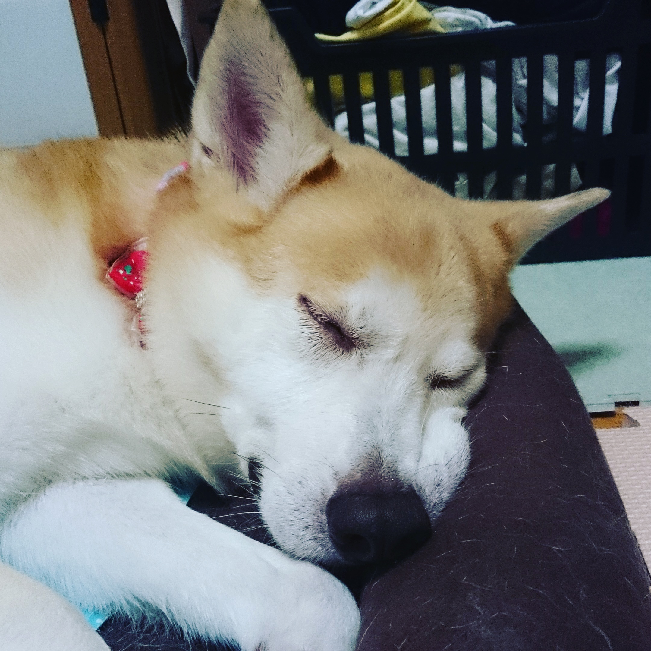 シャンプー後はいつもぐっすりイビキをかいて寝ております