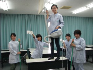 授業の終わりに1年生と3年生が大掃除してました。