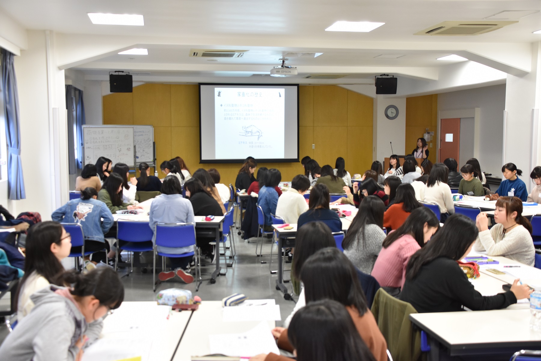 基礎授業は、犬や猫の歴史や種類について、グループワーク形式で行いました